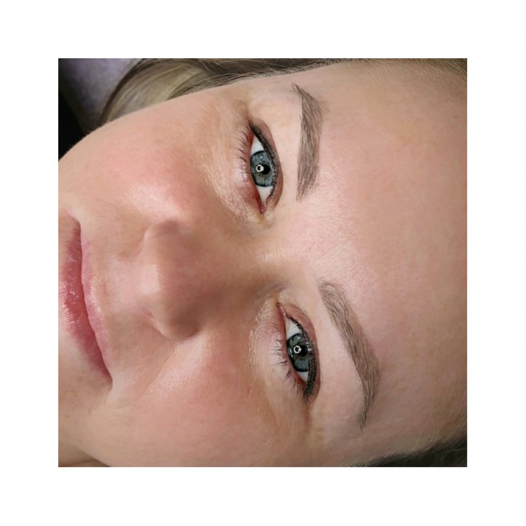 Šeit redzamas sadzijušas uzacis un starpskropstu līnija mēnesi pēc pirmreizējās procedūras!