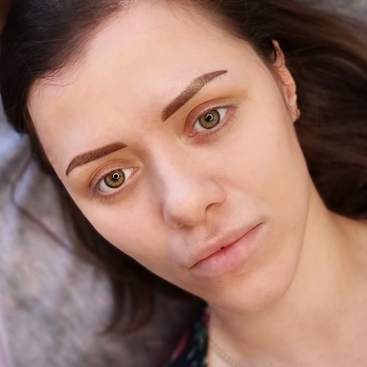 Izteiksmīgas uzacis uzreiz pēc procedūras, sadzīstot krāsa būs gaišāka un maigāka.